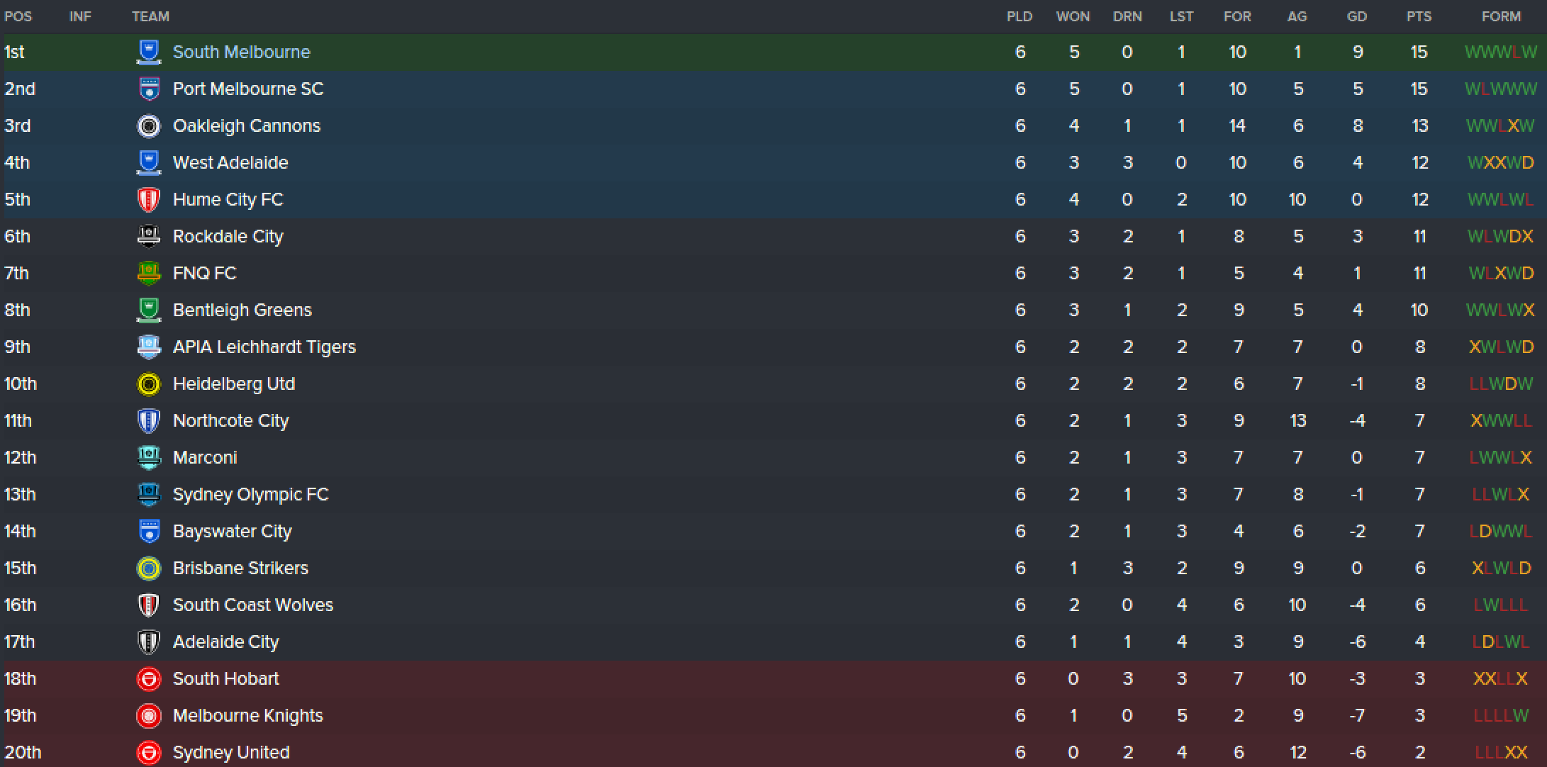 “South Melbourne are fifth which is surprising, so they’re just hanging onto a promotion play-off spot to the A-League. The other interesting thing I’m waiting for is who’s going to get relegated from the A-League. Currently the Newcastle Jets and the Central Coast Mariners are sitting ninth and tenth.