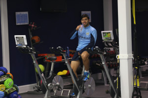 Manchester City’s Sergio Aguero keeping up with rehab in the gym at Carrington