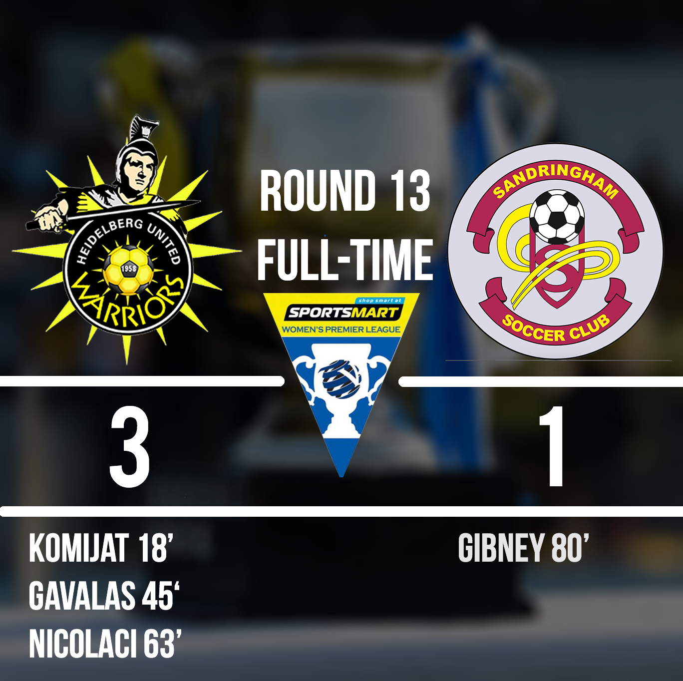 Heidelberg United 3 (Komijat 18’, Gavalas 45’, Nicolaci 63’) defeated Sandringham SC 1 (Gibney 80’) at State Football Centre [HT: 2-0]