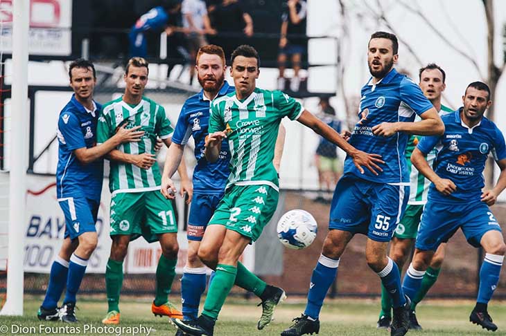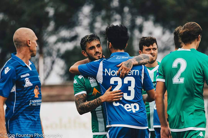 Both sides exchanged opportunities throughout the first half with Marino Gasparis’ stinging half-volley clipping the crossbar while Marco Jankovic’s scuffed shot was saved on the goal line by Alex Pavlidis.